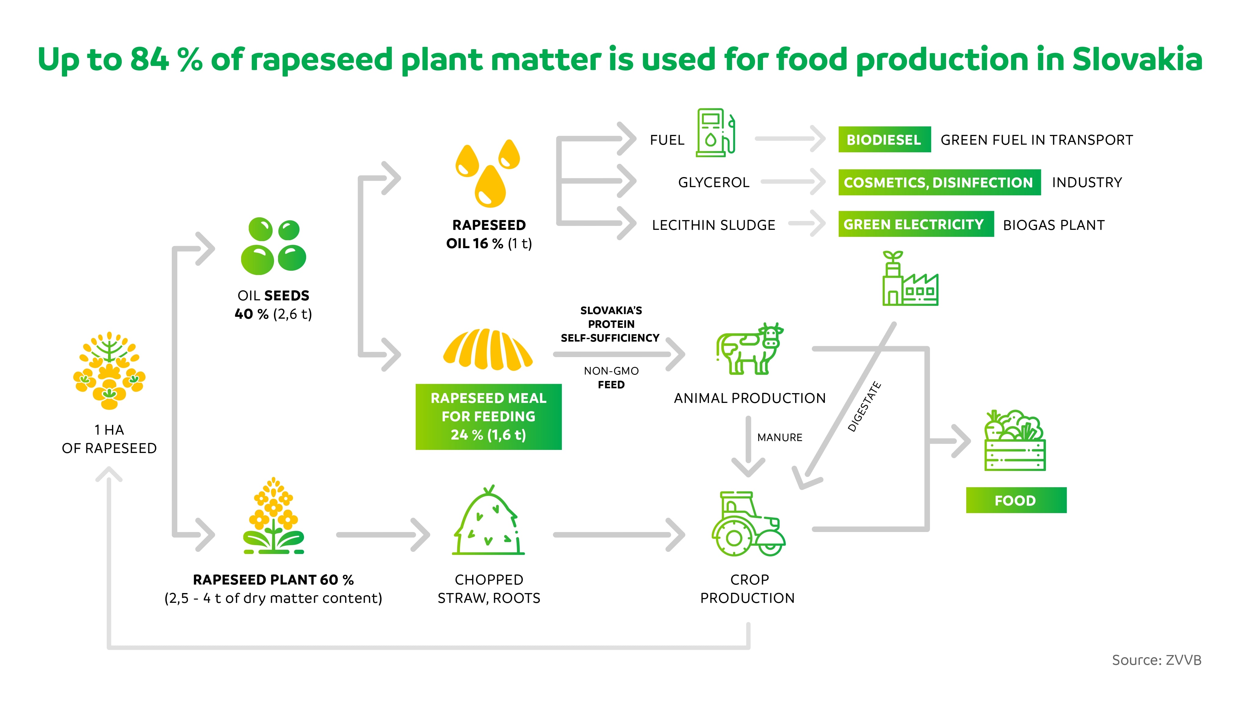 Statements about rapeseed monoculture fields to supply biofuels production are not accurate. Under good farming practice, rapeseed is never grown as a monoculture – this is neither possible nor desirable. The European production of agricultural commodities is known for its strict conditions to assure the highest level of sustainability. Rapeseed for all purposes (including food or cosmetics) is grown in Slovakia on only 3.1% of its territory, i.e. 6.5% of its total agricultural land.